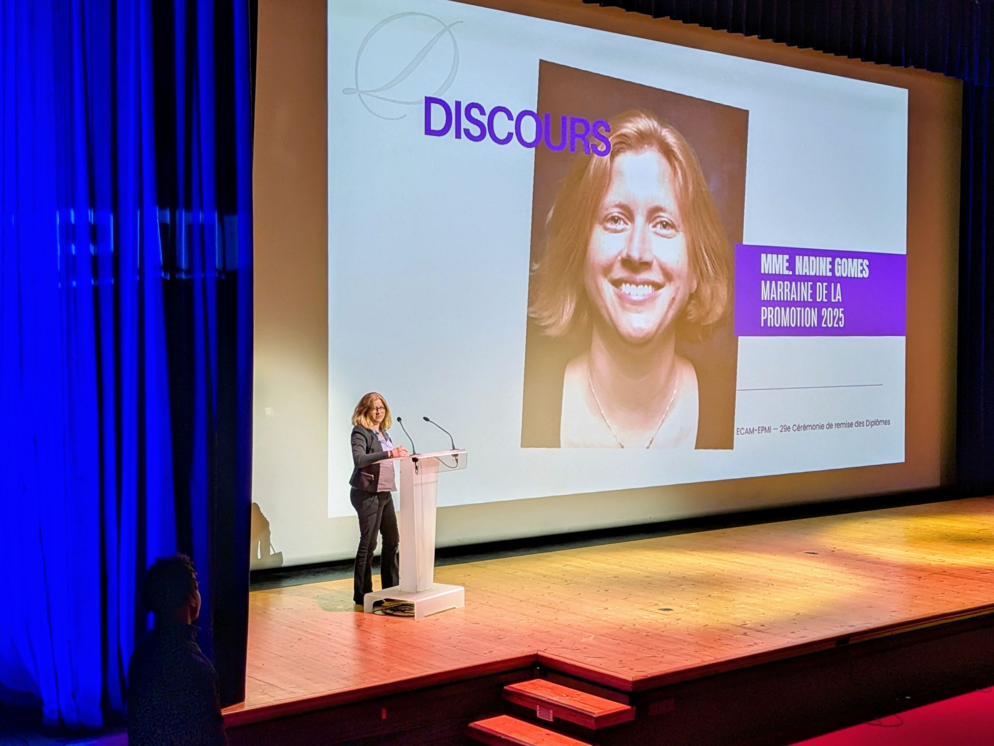 Mme Nadine GOMES, Marraine de cette promotion et ancienne de l’École (promotion 2003), a pris la parole pour transmettre l’histoire inspirante de son propre parcours et communiquer ses exhortations et encouragements à l’adresse de nos diplômé(e)s.